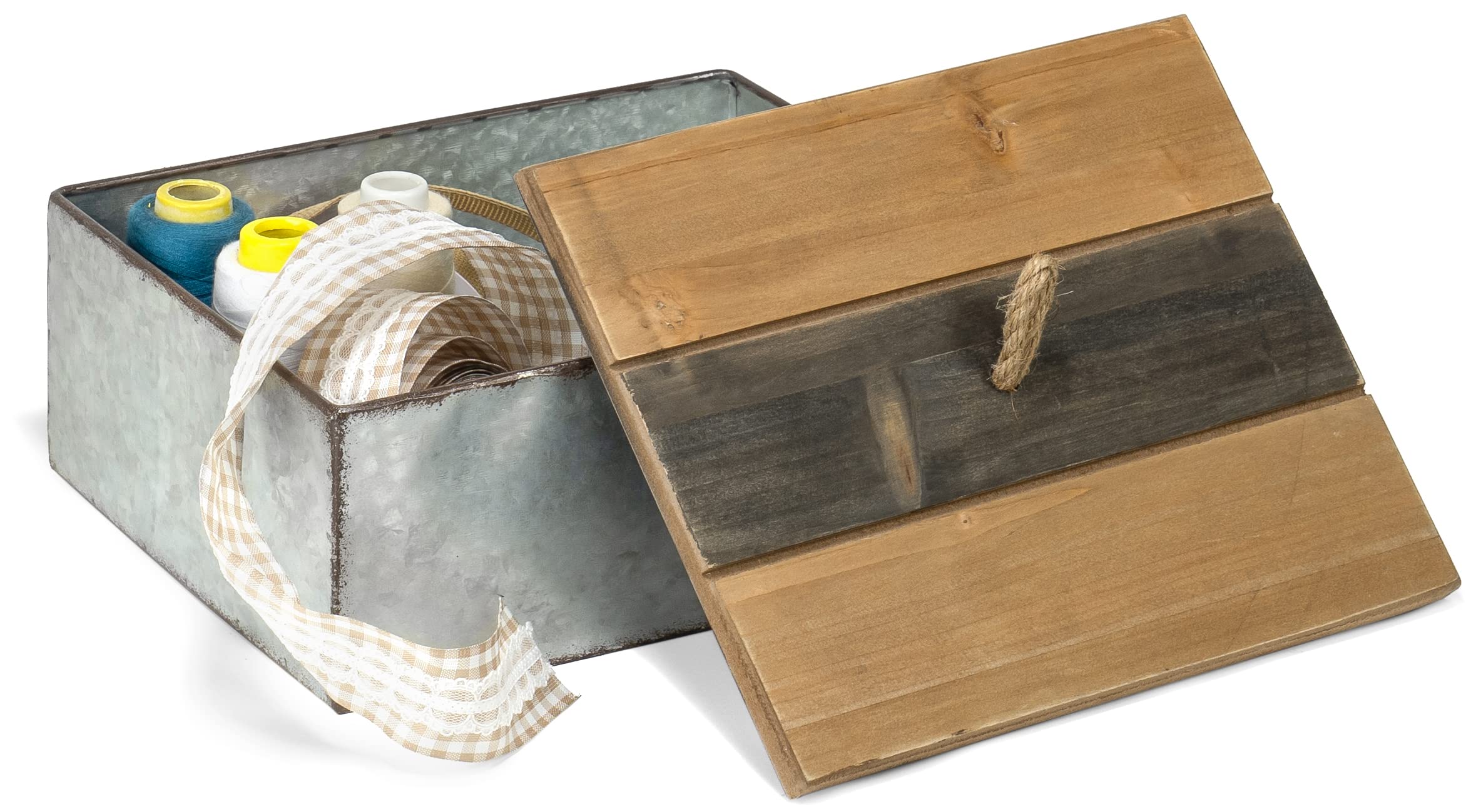 Red Co. 10.25" x 8" Country Rustic Galvanized Metal Decorative Storage Box with Wooden Lid