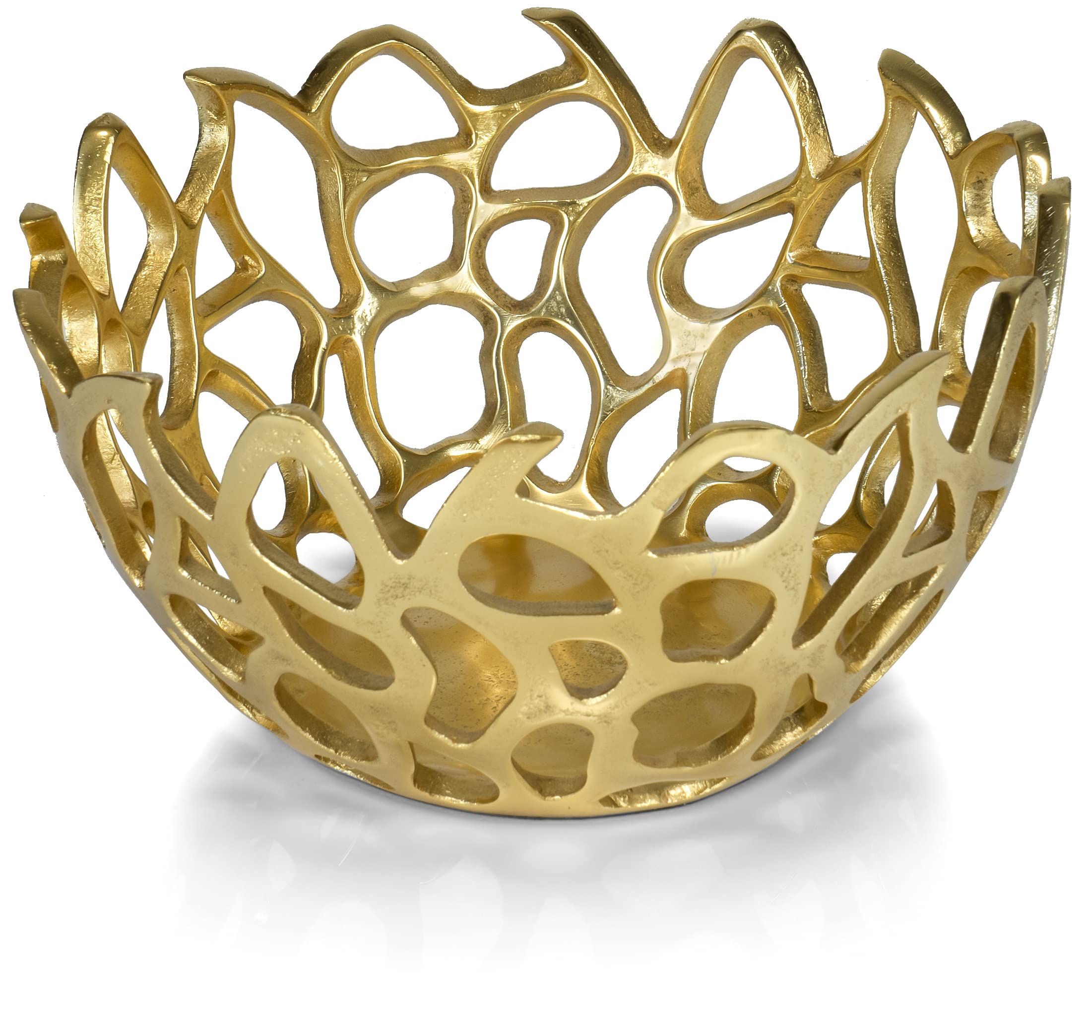 - Crafted of aluminum with metallic gold finish, the bowl is 5.25” tall with a 10” diameter
