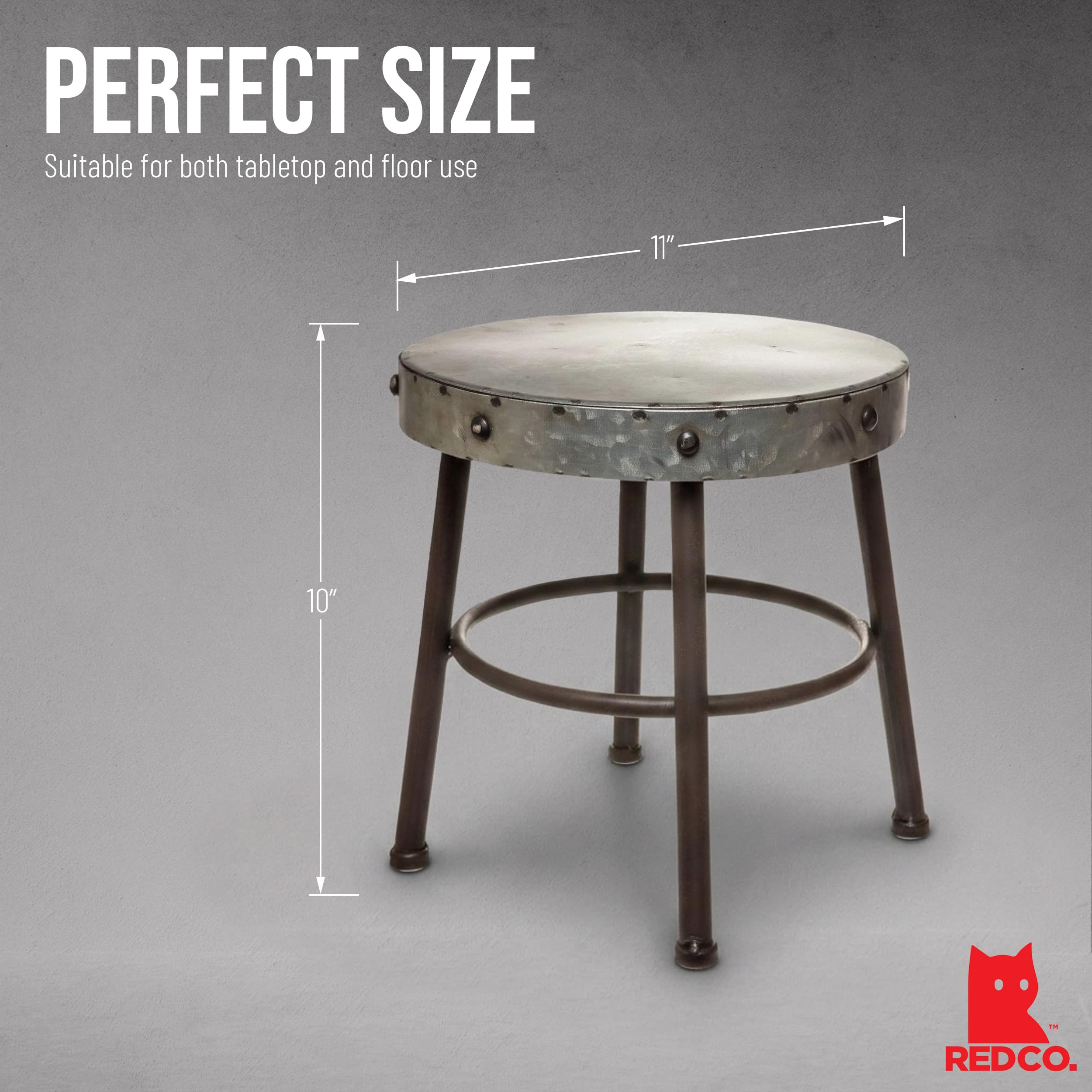 Red Co. 10” Tall Round-Top Antique Metal Milking Stool Display Plant Stand Holder, Weathered Silver Tone