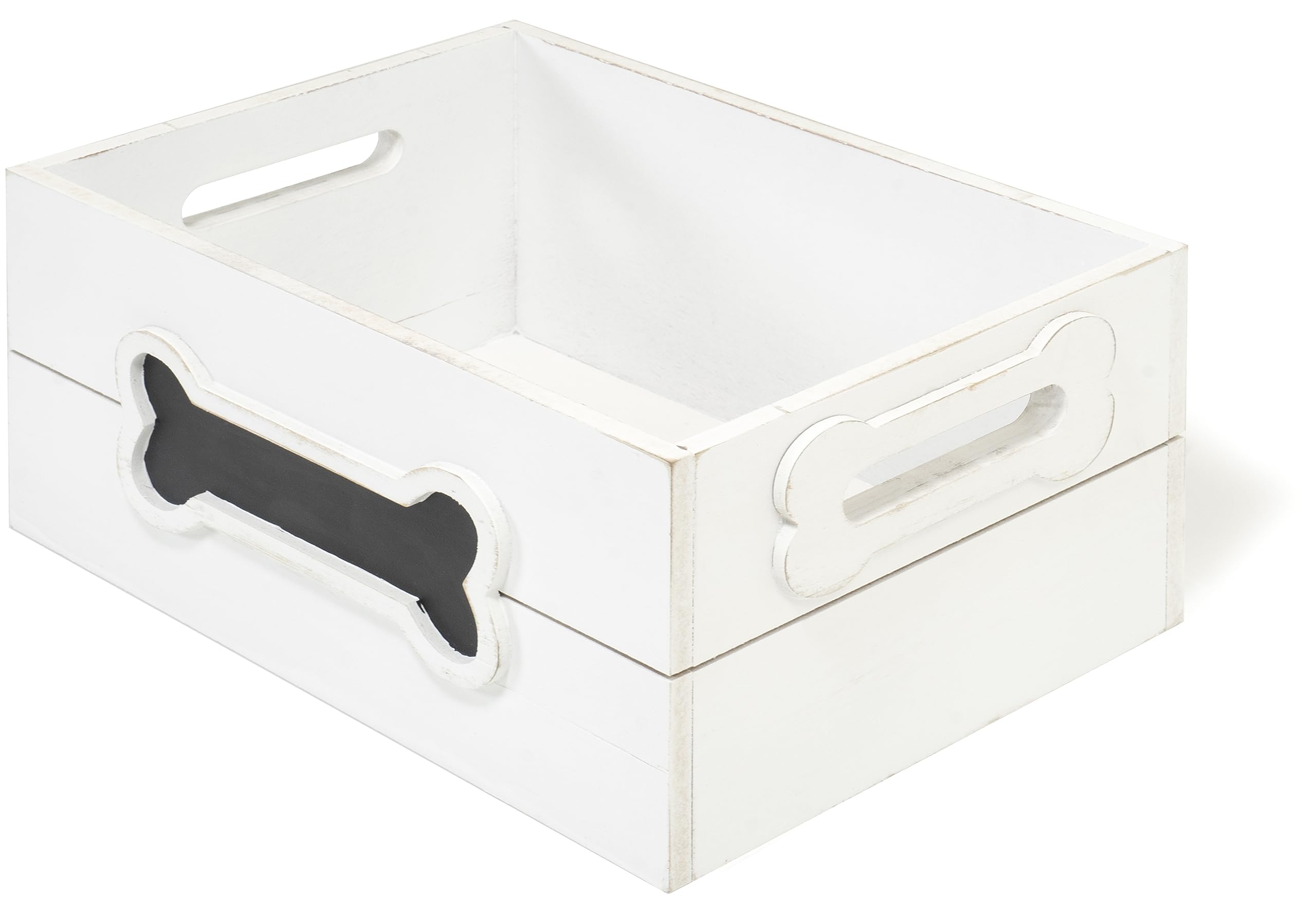 Red Co. 12” x 9” Distressed Wood Crate Dog Toy Storage Box with Handles and Chalkboard, White