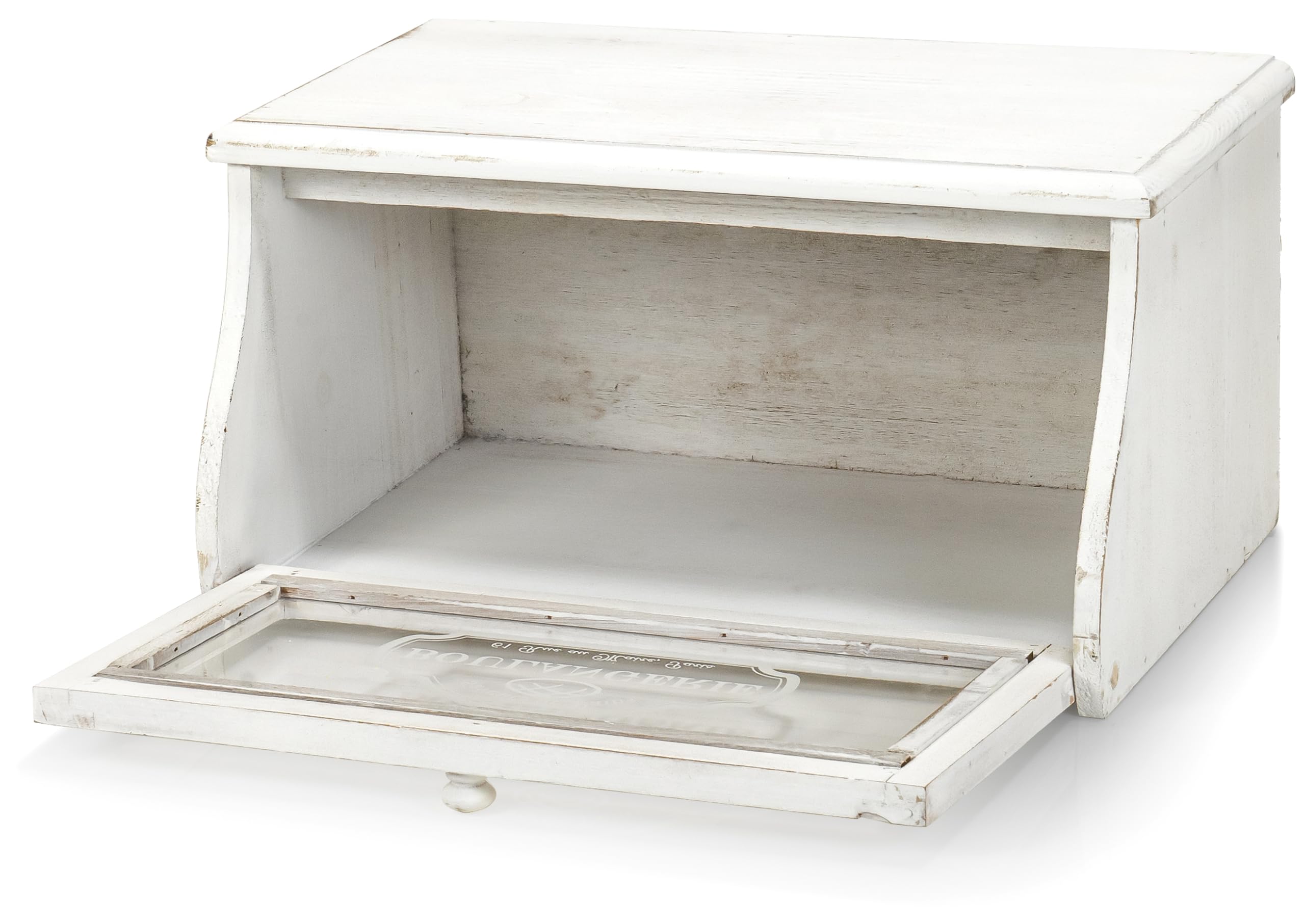 Red Co. 14”x 7” Rubberwood Bread Storage Box with Acrylic Front & Knob Handle, White