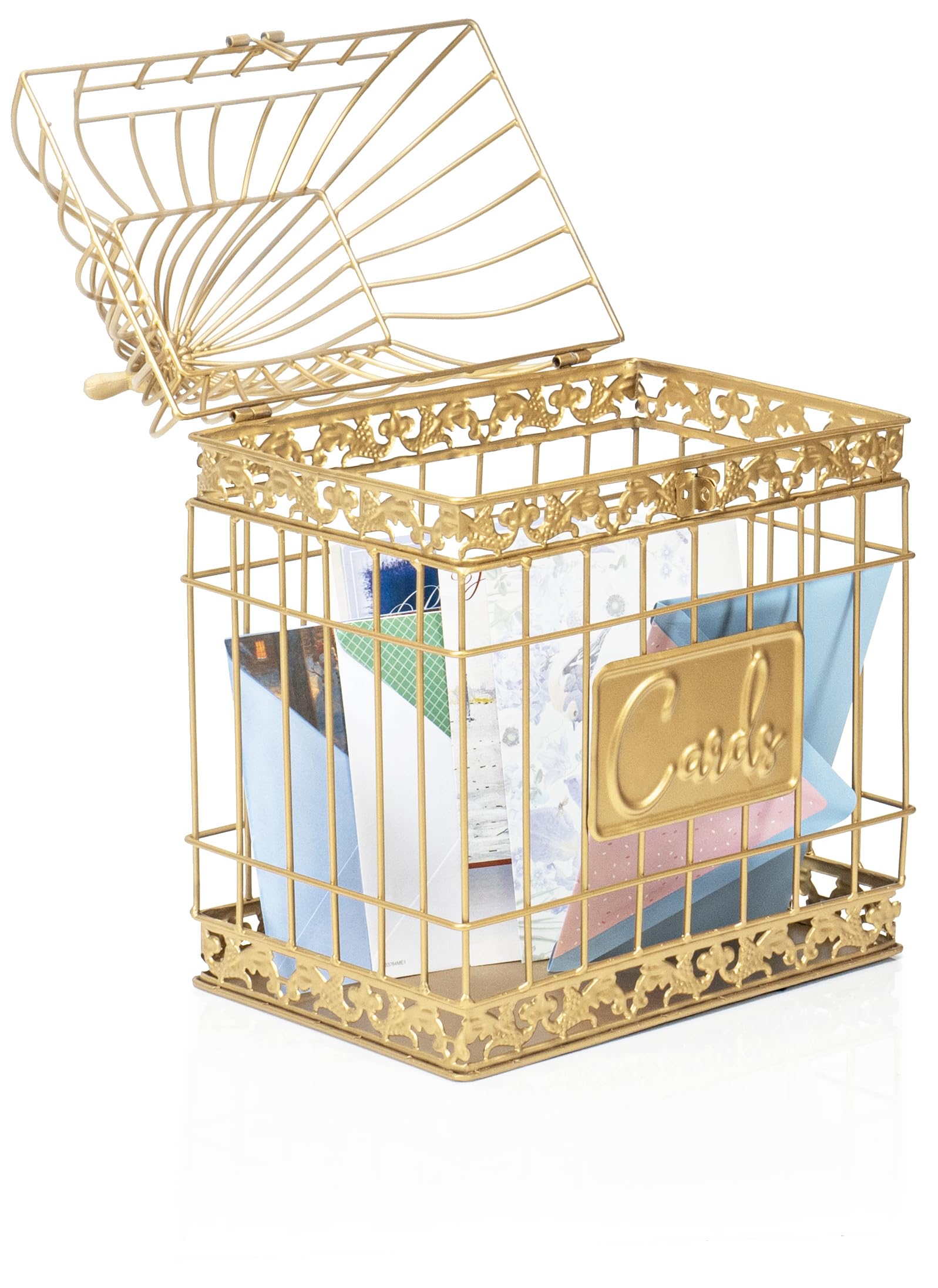 - Made from high-quality metal with a sleek and elegant gold finish, this birdcage card holder is durable and long-lasting