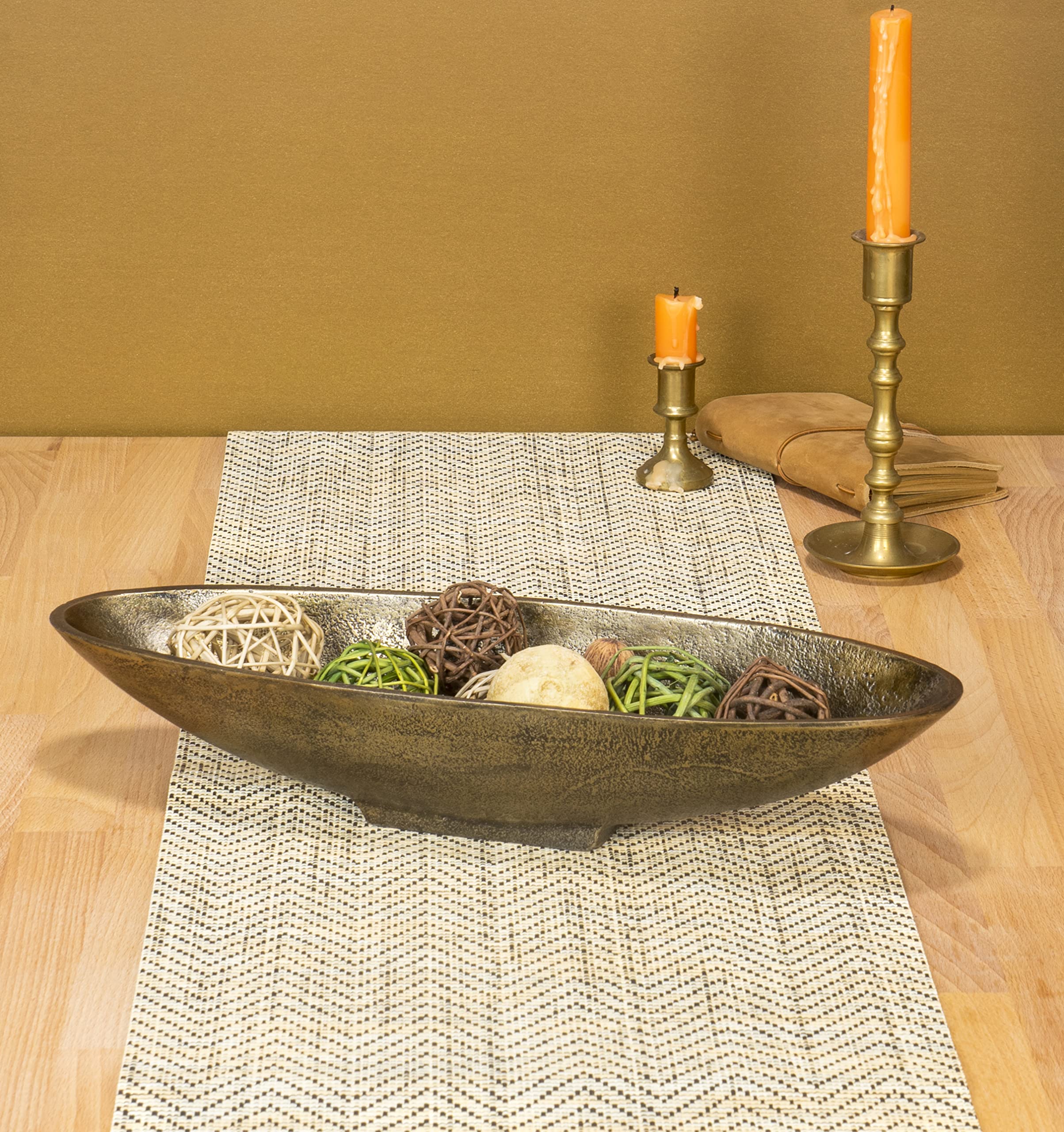 - Made of high-quality aluminum with a textured rough silver surface, the bowl measures 16” W x 5” D x 3” H