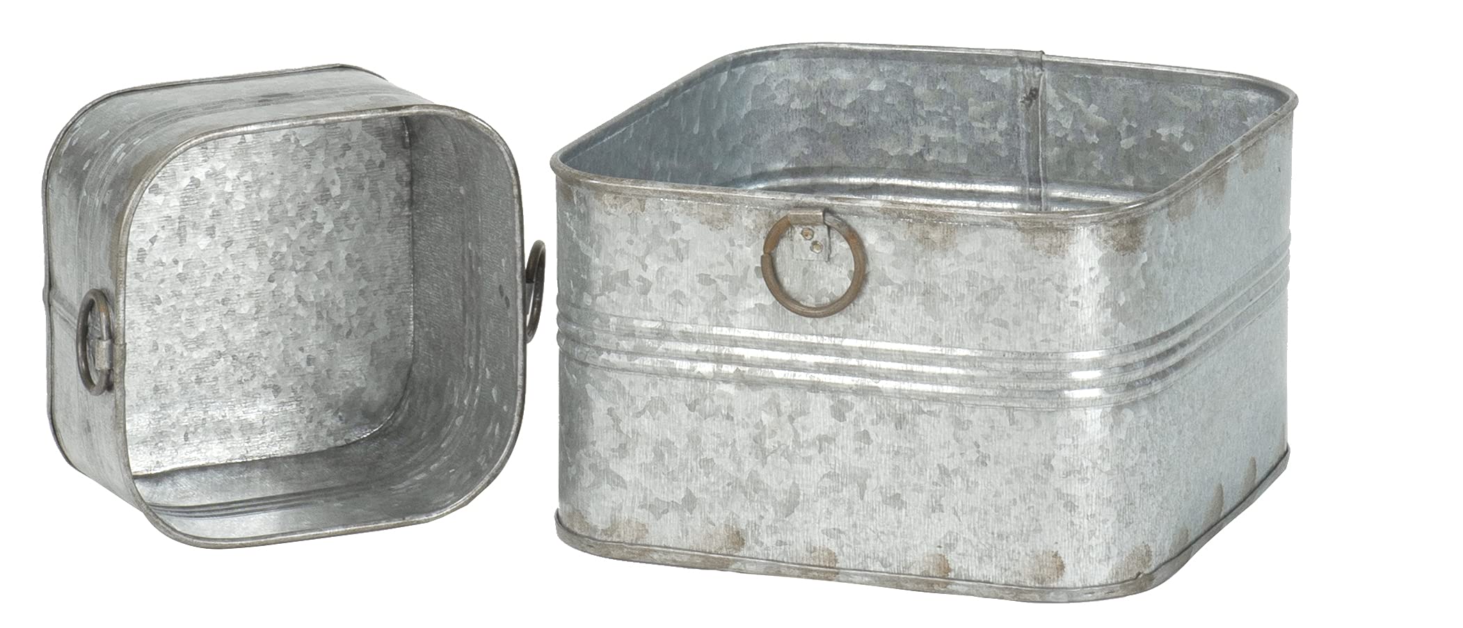 Red Co. 6.5" and 4.5" Square Tub Galvanized Metal Bucket Containers Set of 2, Rusted Gray