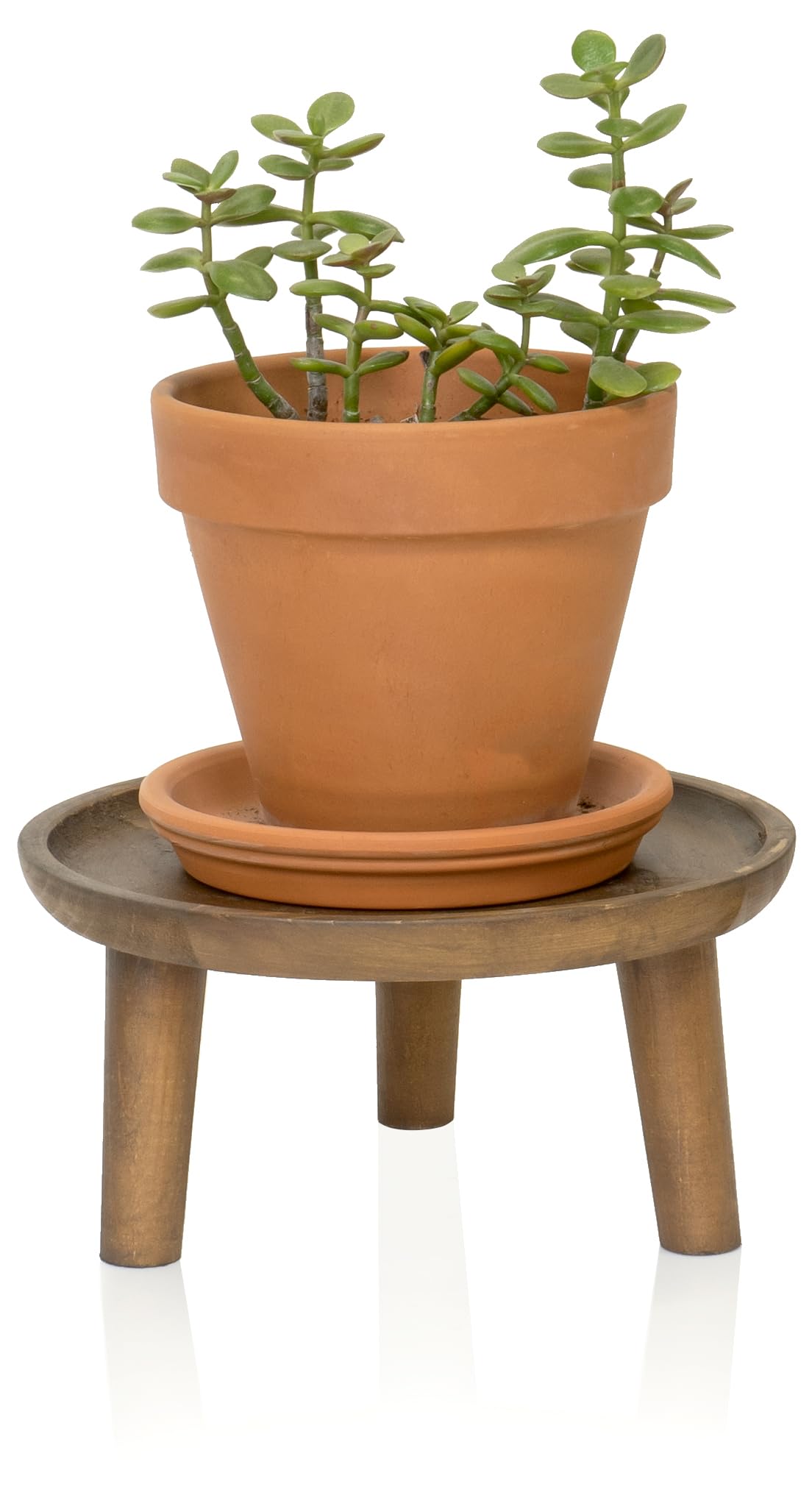 Red Co. 8.75” Dia Round Decorative Wooden Pedestal Plant Stand with Legs, Natural Brown