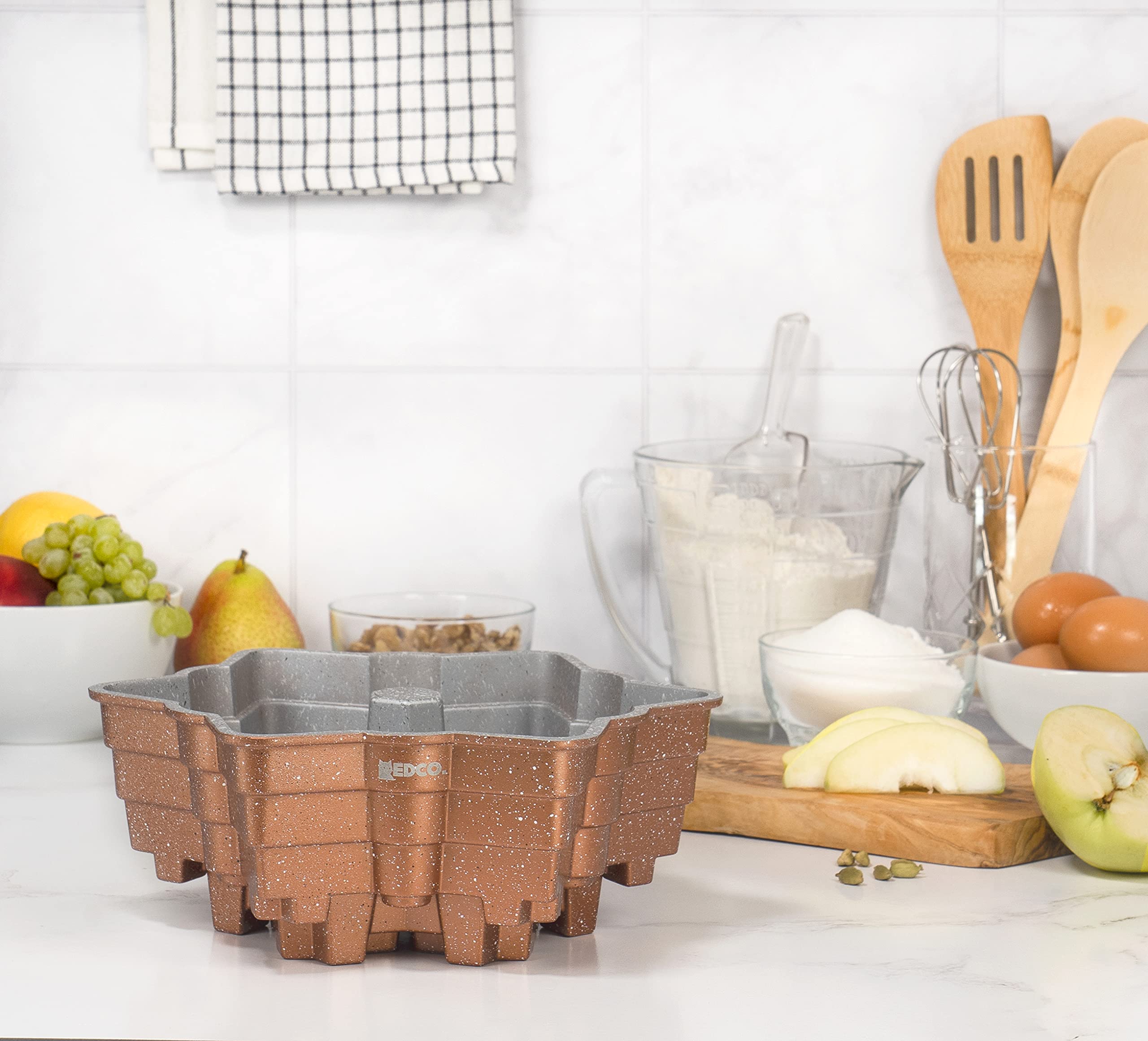Red Co. 8 Cup Non Stick Cast Aluminum 9.5 inch Snowflake Cake Baking Pan, Copper Finish