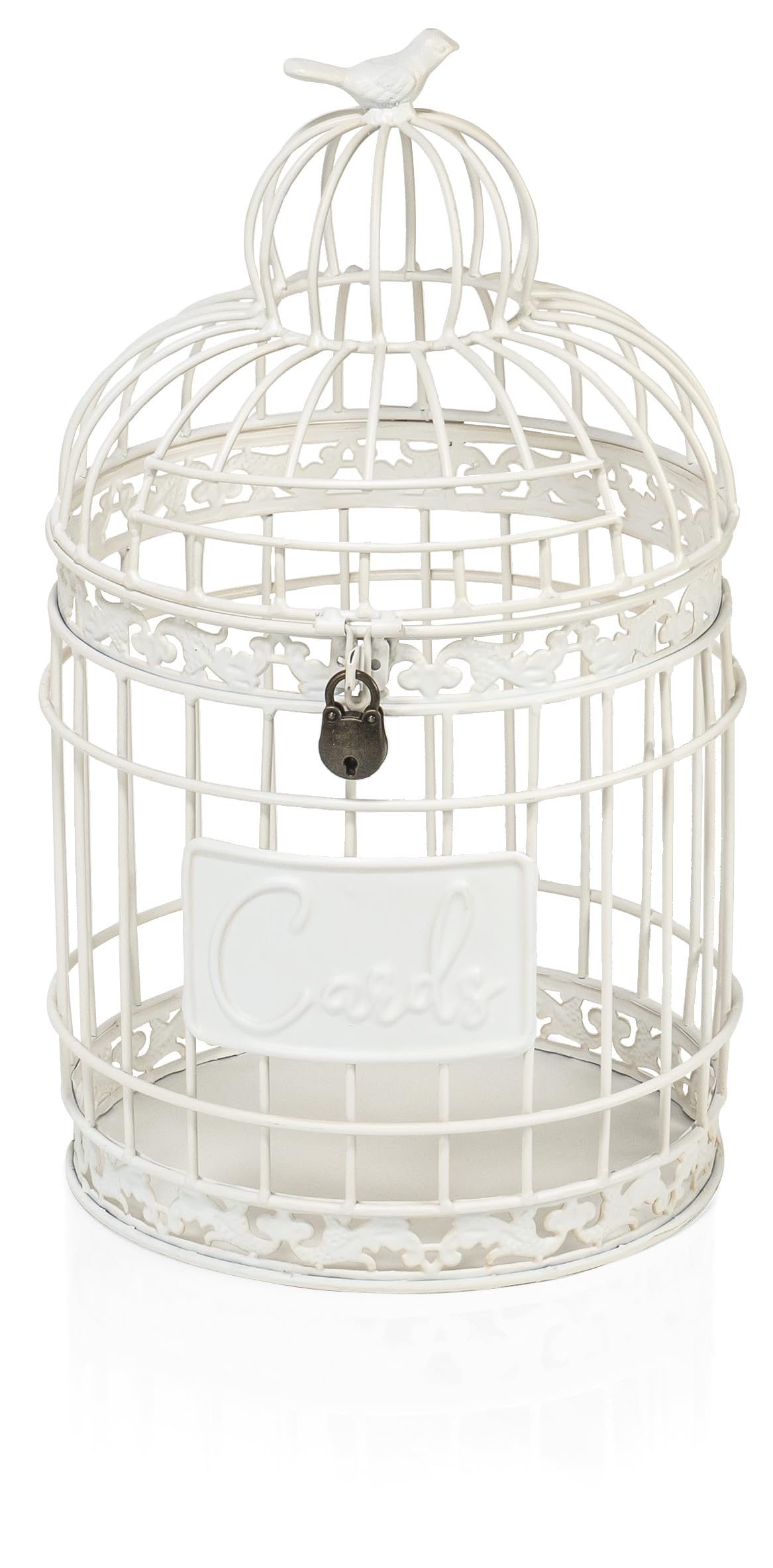 Red Co. 9.5” Dia Round Decorative Rustic Lockable Metal Birdcage Wedding Card Holder, White