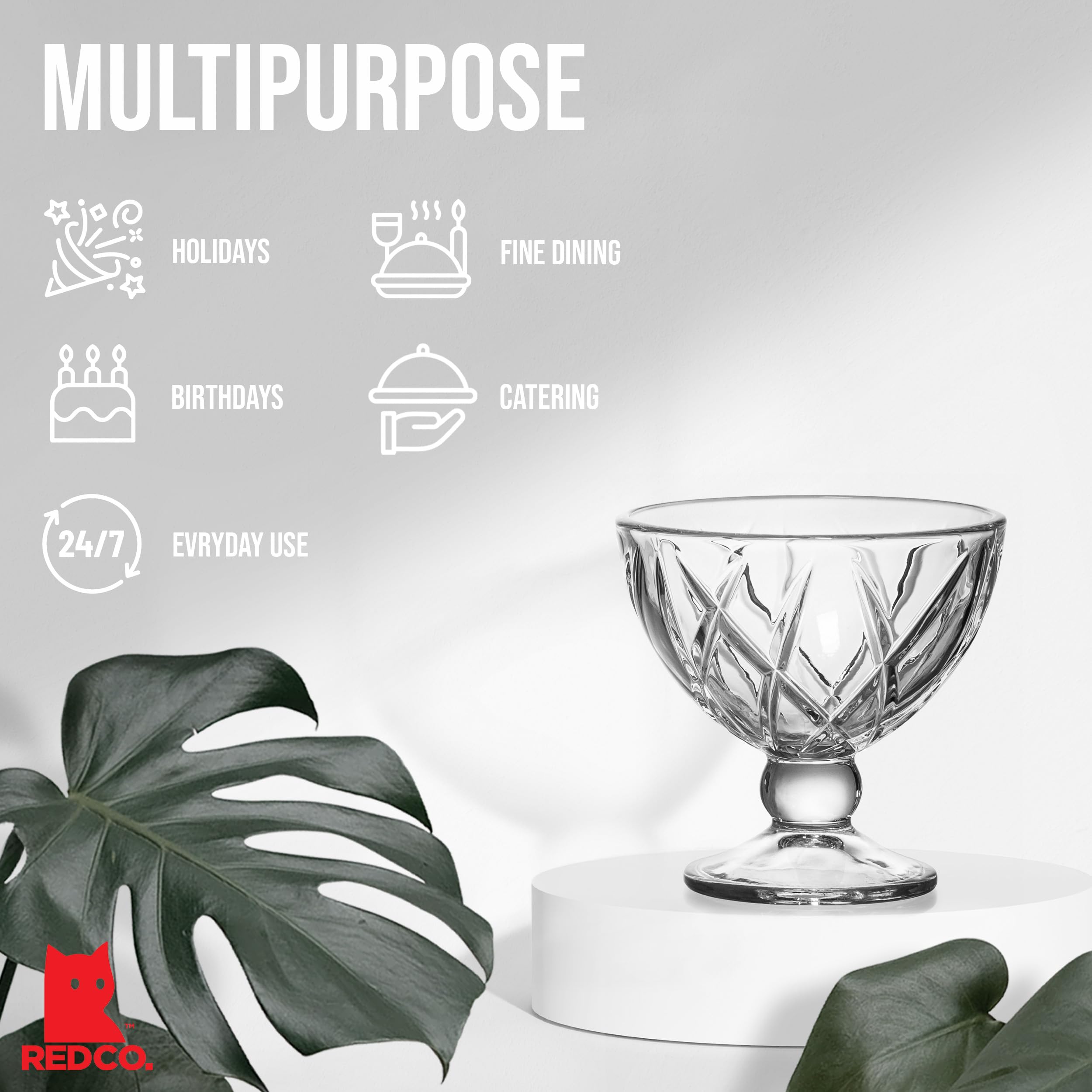 Red Co. Classic Footed Dessert Cups, Premium Crystal Clear Glass Ice Cream Bowls - Perfect for Parfait Fruit Salad or Pudding, Set of 6, 9 OZ