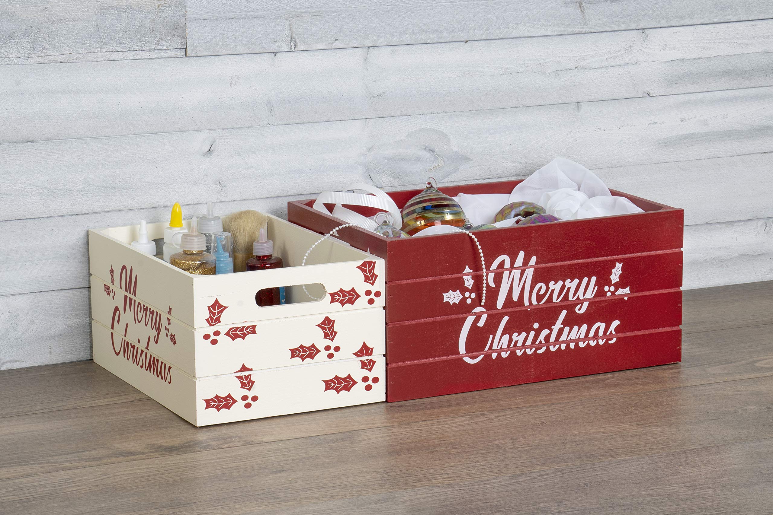 Red Co. Set of 2 Red and White Decorative Nesting Wooden Merry Christmas Storage Crate Organizers with Lettering