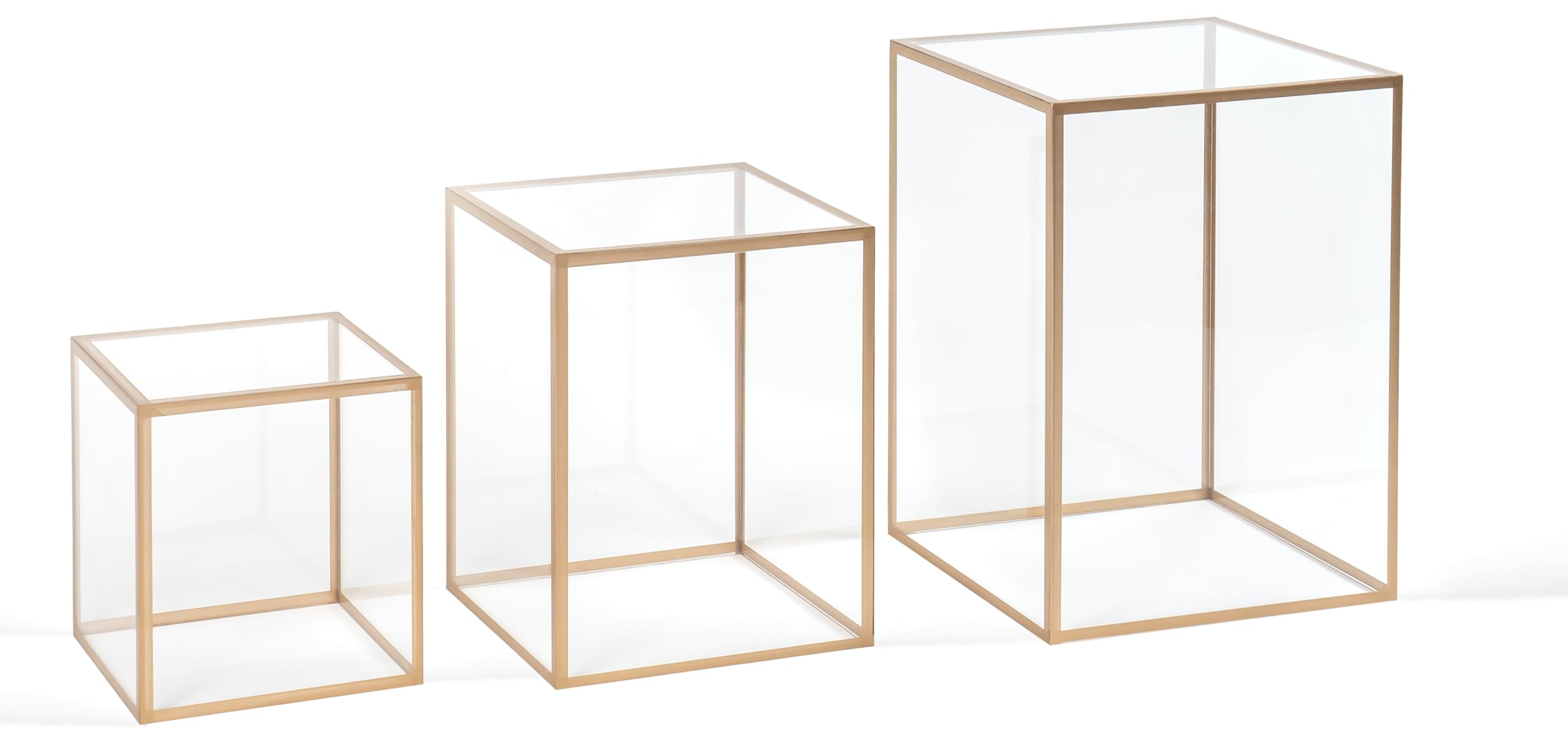 Red Co. Set of 3 (5", 7", 9") Square Clear Acrylic Event Decor Display Pedestal Stands with Golden Rims