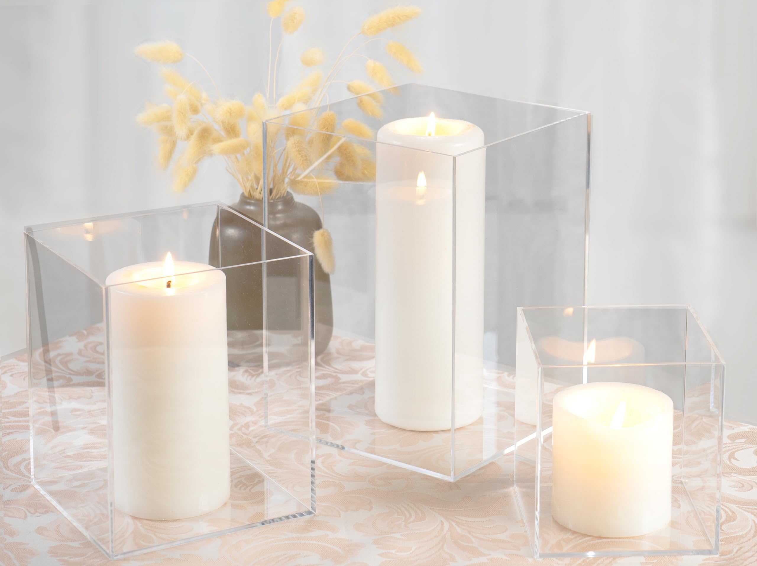 Red Co. Set of 3 (5", 7", 9") Square Clear Acrylic Event Decor Display Pedestal Stands with Polished Edges