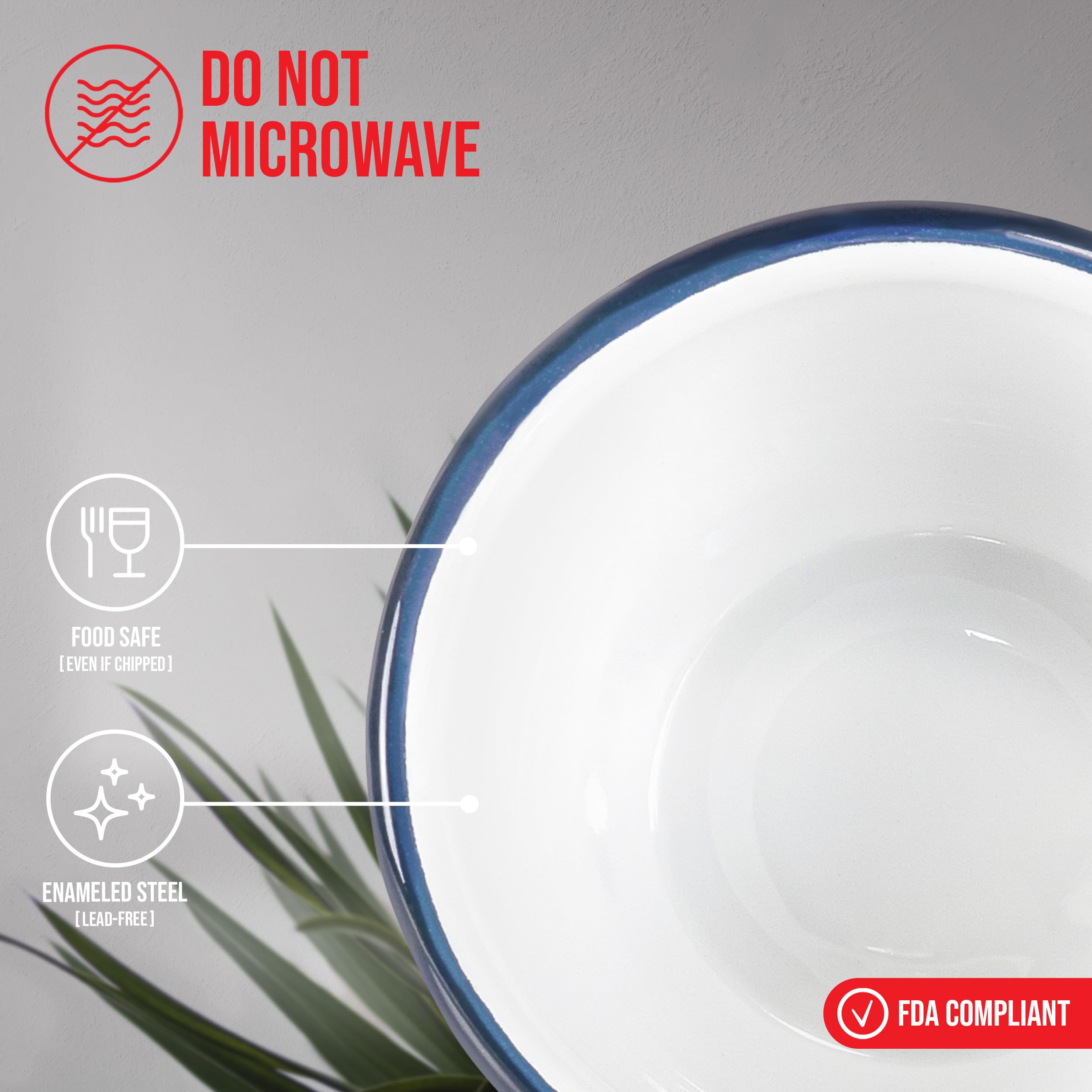 Red Co. Set of 4 Enamelware Metal 7 oz Mini Ice Cream Bowls, Solid White/Navy Blue Rim